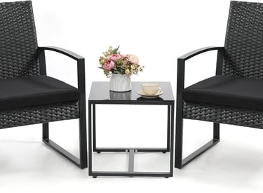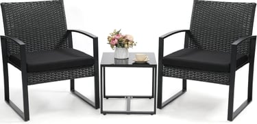 3 Piece Wicker Patio Bistro Set, Rattan Conversation Set with Coffee Table, for Balcony, Porch, Garden, Yard, Poolside, Black Frame with Black Cushion
