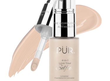PÜR MINERALS 4-in-1 Love Your Selfie Foundation & Concealer - Longwear Full Coverage Liquid Makeup Foundation with Hydrating Blend for Refined-Looking, Natural Beauty Glow, Skin Texture & Tone