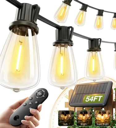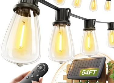 addlon 54(48+6) FT Solar String Lights Waterproof,Patio Lights Solar Powered with Remote & USB Port 15+1 LED Shatterproof Bulbs 3 Light Modes, Dimmable Solar Light for Camping