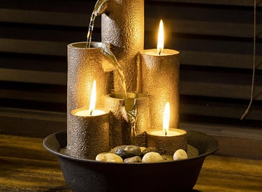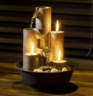Alpine Corporation WCT202 Indoor Tabletop Tiered Water Fountain Featuring 3 Candles for Desktop and Table, 11", Brown