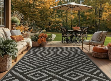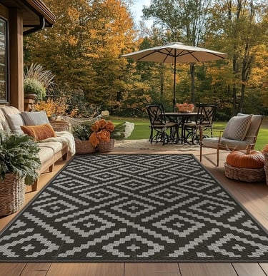 GENIMO Outdoor Rug for Patio Clearance,5'x8' Waterproof Mat,Reversible Plastic Camping Rugs,Rv,Porch,Deck,Camper,Balcony,Backyard,Black & Gray
