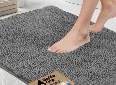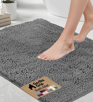 GORILLA GRIP Bath Rug Mat, Thick Soft Absorbent Chenille, Quick Dry Microfiber Mats, Rubber Backing Washable Shower Floor Rugs, US Designed Bathroom Bathmat Home Decor Accessories, 24x17, Grey