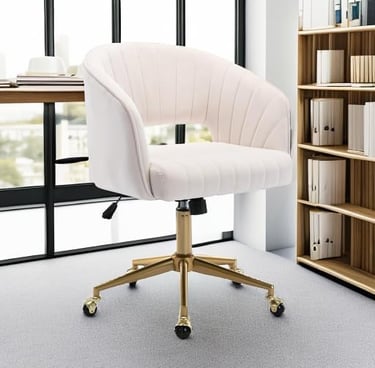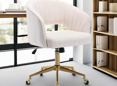Home Office Chair Swivel Velvet Desk Chair Accent Armchair Upholstered Modern Tufted Chairs with Gold Base for Girls Women Ergonomic Study Seat Computer Task Stools for Living Room(Cream)