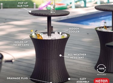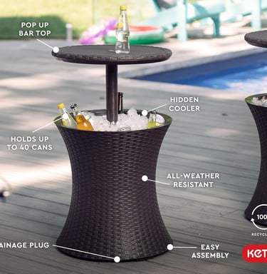 Keter Pacific Cool Bar Outdoor Patio Furniture and Hot Tub Side Table with 7.5 Gallon Beer and Wine Cooler, Espresso Brown
