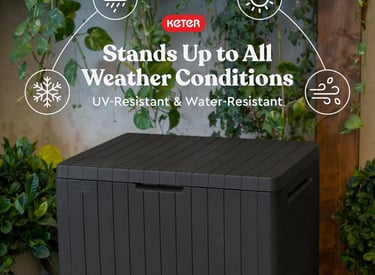 Keter City 30 Gallon Resin Outdoor Storage Box and Patio Furniture Side Table for Pool and Garden Accessories, Dark Grey
