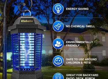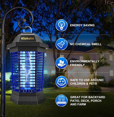 Klahaite Bug Zapper Outdoor, Electric Mosquito Zapper, Fly Zapper Indoor Fly Traps, Mosquito Repellent Outdoor Patio and Backyard Covers 1/2 Acre, 3 Prong Plug, 4200V, ABS Fireproof Plastic Outer
