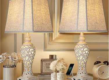 28.5" Table Lamps Set of 2 - Bedside Lamp with Fabric Shades - for Bedroom and Living Room with USB and Nightlight - Perfect for Nightstands and Bedrooms