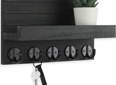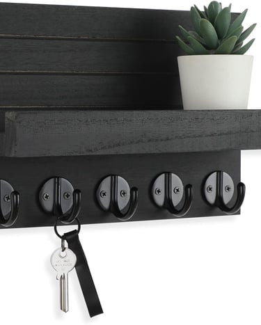 Key Holder for Wall, Decorative Key and Mail Holder with Shelf Has Large Hooks for Bags, Coats, Umbrella – Paulownia Wood Key Hanger with Mounting Hardware (9.8”W x 6.7”H x 4.2”D)