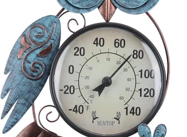 MUMTOP Outdoor Thermometer, 42 Inch Metal Owl Garden Stake Outside Wall Thermometer for Patio, Yard and Garden