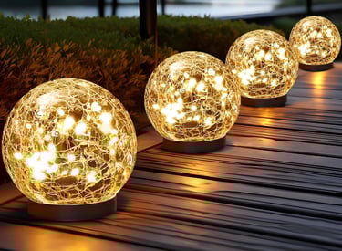 Solar Globe Lights Outdoor Waterproof - Cracked Glass Ball Lights for Garden, Patio, Yard, Lawn and Backyard Decor - Solar Orbs for Outside Decorations