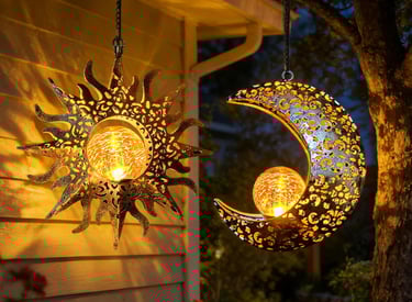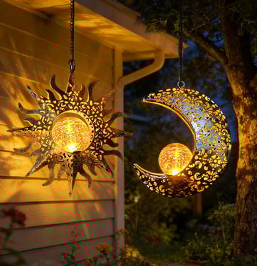 Solar Hanging Sun and Moon Lights Garden Outside Decor,2 Pack Metal Lanterns Outdoor Sunflower Art Decorations for Porch Backyard Patio Wall Tree,Unique Gardening Gifts for Women Mom Grandma