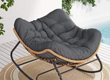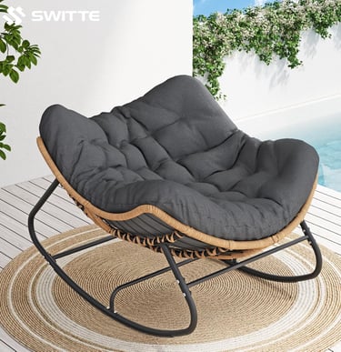 SWITTE Outdoor Rocking Chair, Oversized Patio Papasan Rocker, Comfy Wicker Reading Lounge, Indoor Egg Chair for Bedroom, Living Room, Porch, Garden, Lawn-Dark Grey
