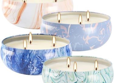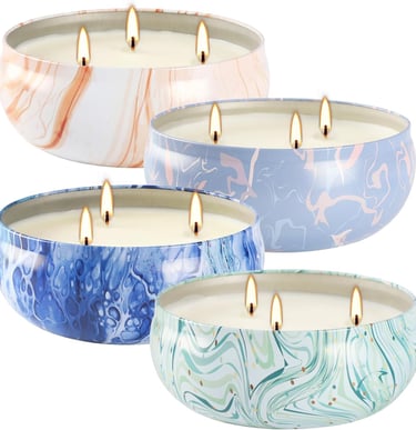 Set of 4 Triple Wick Marble-Style Citronella Scented Candles Natural Soy Wax Summer Outdoor Candles for Outside Indoor Patio Home Garden Yard Balcony Camping Porch BBQ.