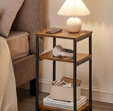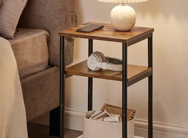 VASAGLE Side Table, Small End Table, Tall Nightstand for Living Room, Bedroom, Office, Bathroom, Rustic Brown and Classic Black