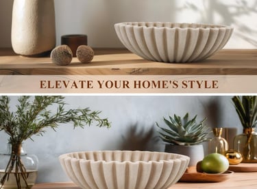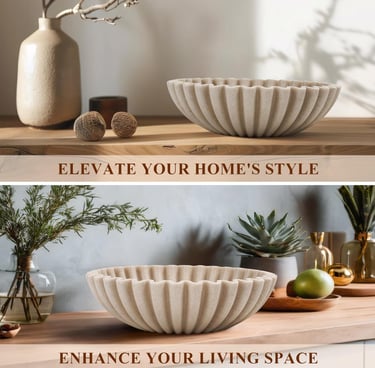 Large Decorative Bowl, Modern Handicraft Bowls for Home Decor, Decorative Fruit Bowl for Kitchen Counter, Ruffle Decor, Stylish Key Bowl for Entry Table, Artificial Stone Beige