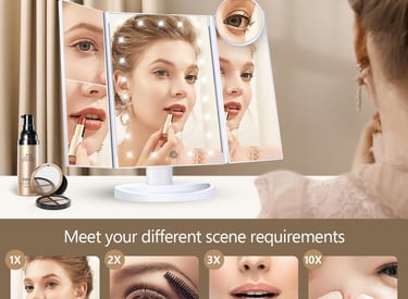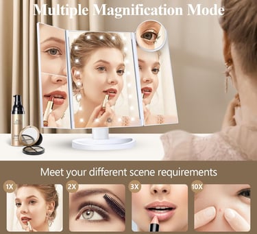 HUONUL Makeup Mirror, Vanity Mirror with Lights, 2X/3X/10X Magnification, Touch Control, Trifold, Dual Power Supply, Mothers Day, Birthday Gifts for Mom,Gifts for Women,Girls, Dorm Room Essentials