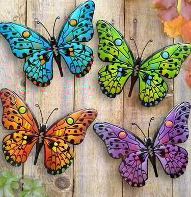 Metal Butterfly Wall Decor - 9.6" Outdoor Fence Wall Art Decor, Hanging Decoration for Garden Yard Living Room Bedroom Patio Balcony(4 Pack)