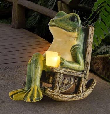 Miniature Frog Garden Statue Gifts Easter Decorations Outdoor Fairy Garden Accessories Outdoor Lights Solar Garden Frog Decor Art Housewarming Gift for Patio,Yard,Lawn Ornament,3.89"x2.36"x3.93