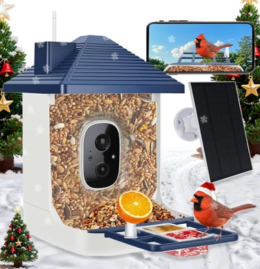 Smart Bird Feeder with Camera,AI Identify Species,Bird House with Solar Powered,Instant Arrival Alerts,2K HD Capture Video Live View,Gift for Birds Lover (Indigo Blue)