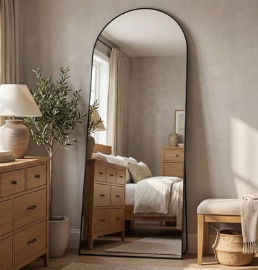 Antok 71" x28” Arched Full Length Floor Mirror, Black Aluminum Frame, Free Standing/Wall Mount/Leaning for Bedroom, Living Room, Dressing Room